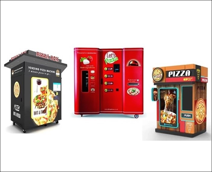 - Pizzametry Pizza Machine: Pizzametry, endüstriyel ölçekte hizmet veren bir pizza otomatıdır. Müşterilere birçok malzeme seçeneği sunar ve pizza pişirme süresi yaklaşık 3-4 dakikadır.